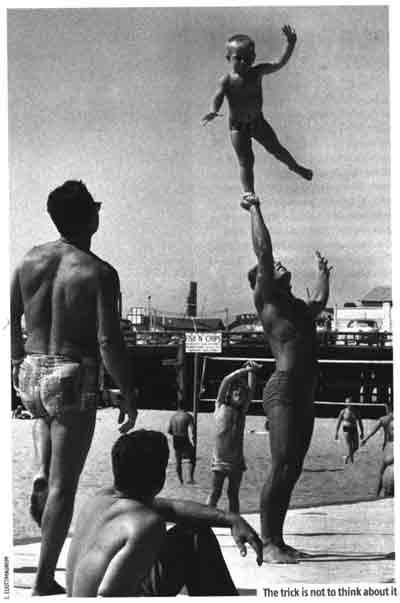 L'image doit réfléter le contenu du texte. Le choix ici est quelque peu ludique, mais attire l'attention du lecteur à l'aide d'une véritable mise en scène. La photo évoque les loisirs, les acrobaties du cirque, et la participation inattendue du jeune enfant rappelle même la statue d'éros à Piccadilly Circus. Tout comme les vacanciers, nous sommes spectateurs impressionnés, et nous nous posons la question "comment le font-ils ?"
